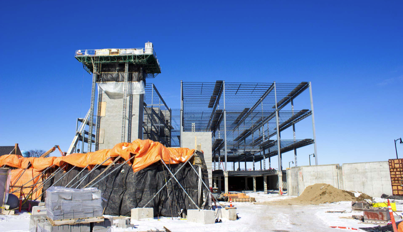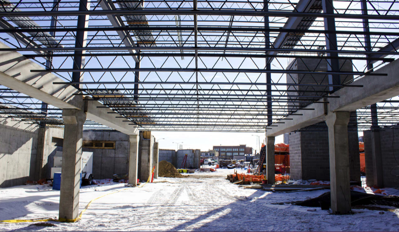 City Hall has volume now with a fair amount of steel up on the North end of the building. The Southern portion of the building is underway with concrete footings being poured, CMU being placed for the elevator/stair shafts and foundation walls being formed. We will start precast and steel on the Southern end as soon as the foundations are ready. While we work South with precast and steel, we will begin framing exterior walls on the North end.